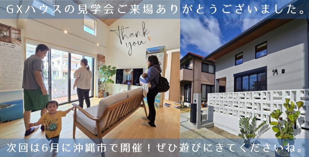先日、3月21~23日まで、那覇市にてハルモデザインの高性能木造注文住宅「HARMO GX HOUSE」の完成見学会を開催させて頂きました。ご協力いただきましたお施主様をはじめ、ご来場いただきましたお客様に感謝を申し上げます。デザインはもちろんのこと、性能... -