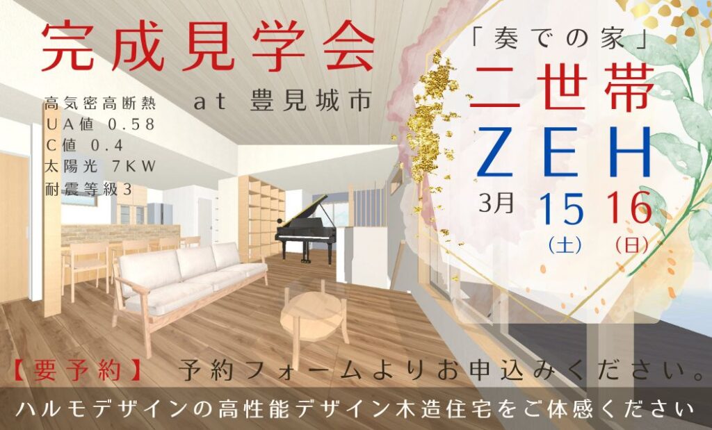 【終了】二世帯ZEH住宅「奏での家」完成見学会 のご案内