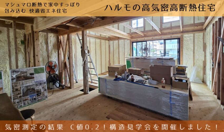 高気密高断熱 GX志向型住宅の構造見学会を先日開催しました。先だって行われた気密測定ではC値0.2をマークしました!