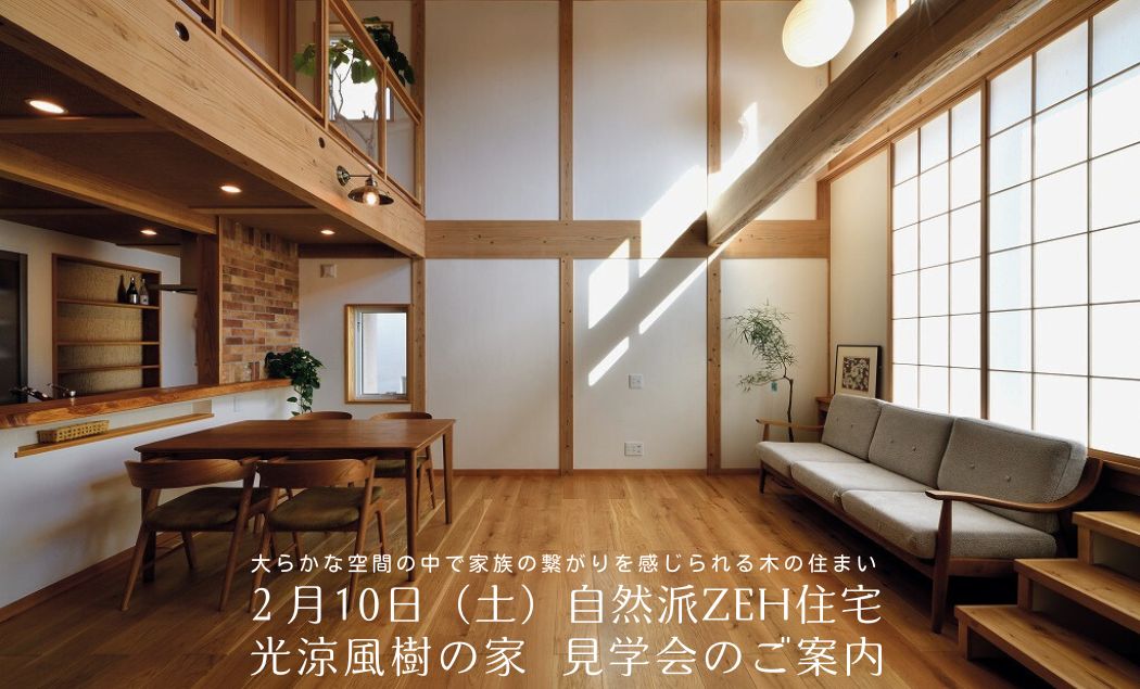 豊見城総合公園近くにある自然派ZEH住宅 光涼風樹の家の見学会を2/10(土)に開催致します。