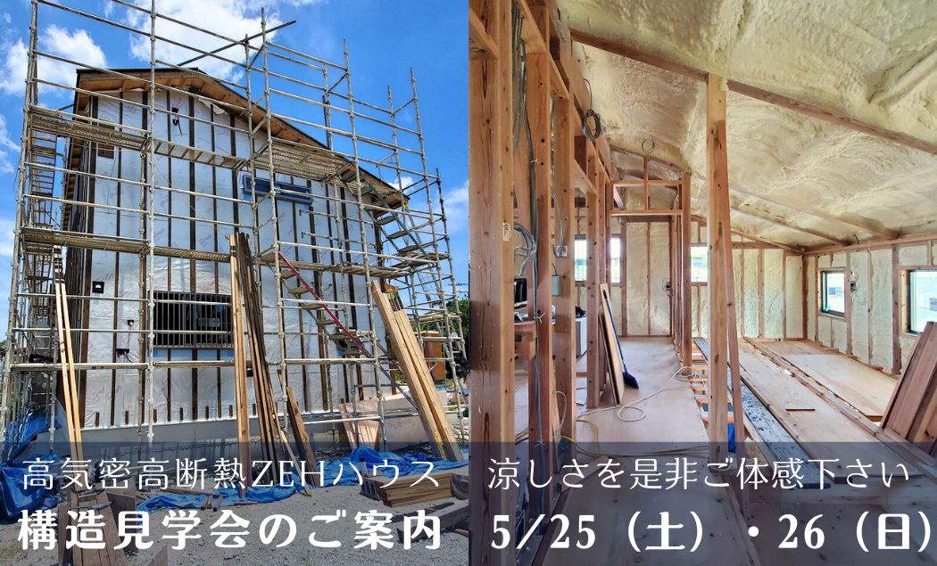 5/25(土)と5/26(日)に豊見城市金良にて構造見学会を開催致します。暑くなってきたこの頃、高気密高断熱材住宅っていうけどどれだけ涼しいの?という方必見のイベントです!