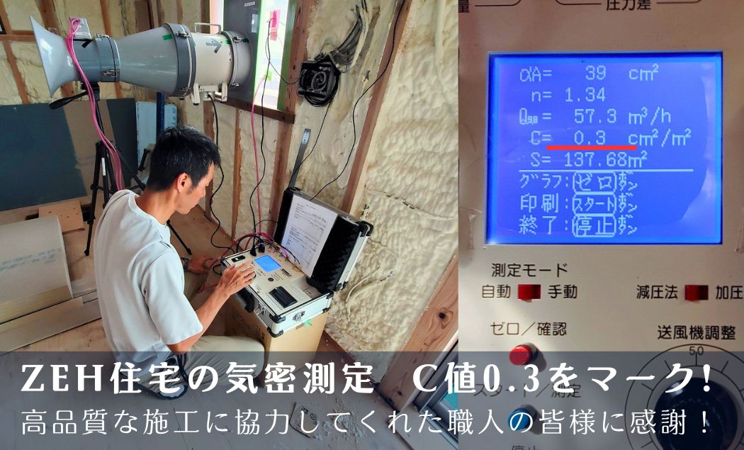 しかし、もう少し上げたいね、ということでスタッフみんなでわずかな空気の漏れを探してまわります。再測定の結果はC値0.3! 納得の結果になりました。これからも高い品質を確保するようハルモデザインの施工手順に沿って丁寧に施工して参ります。
